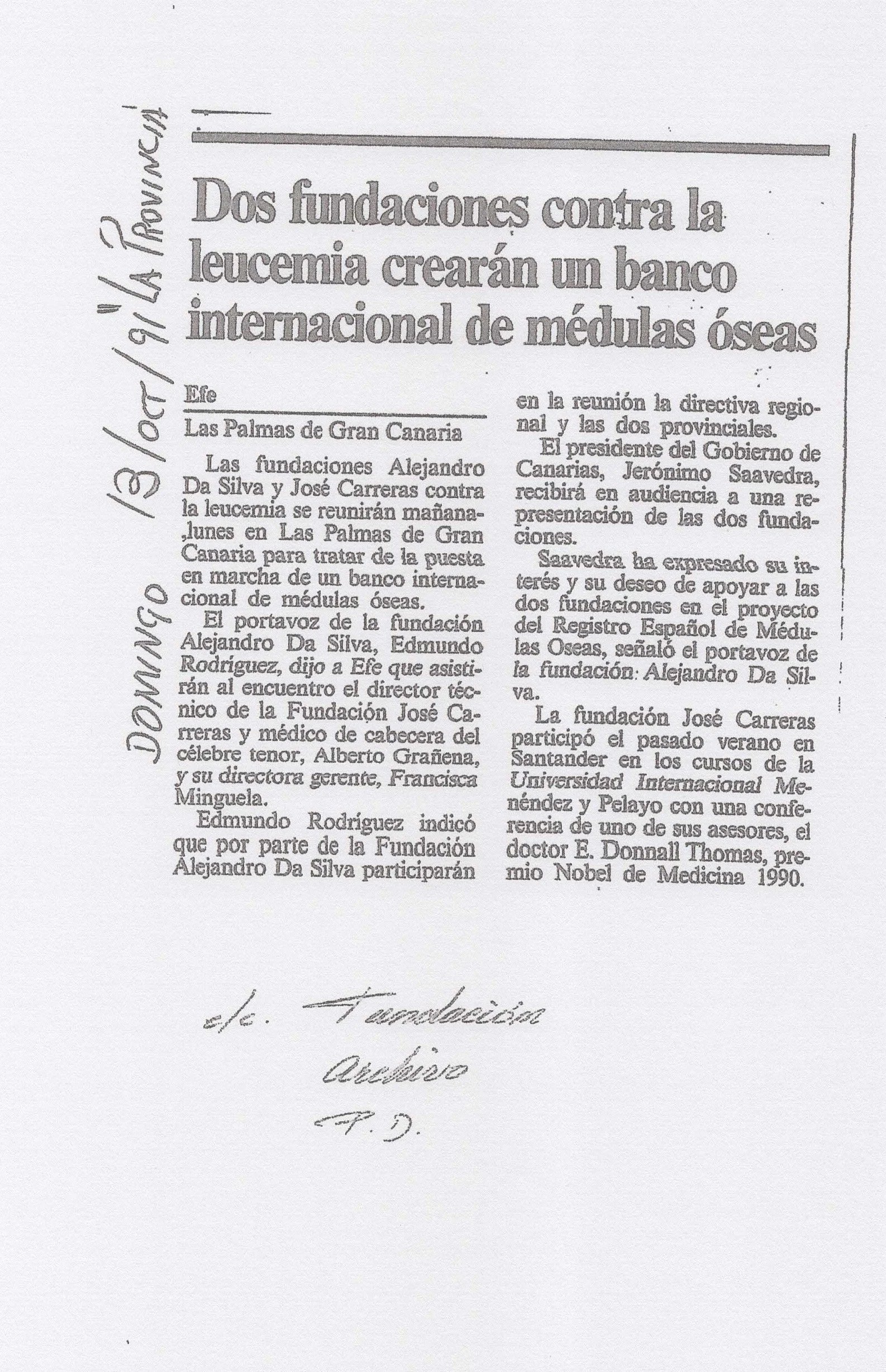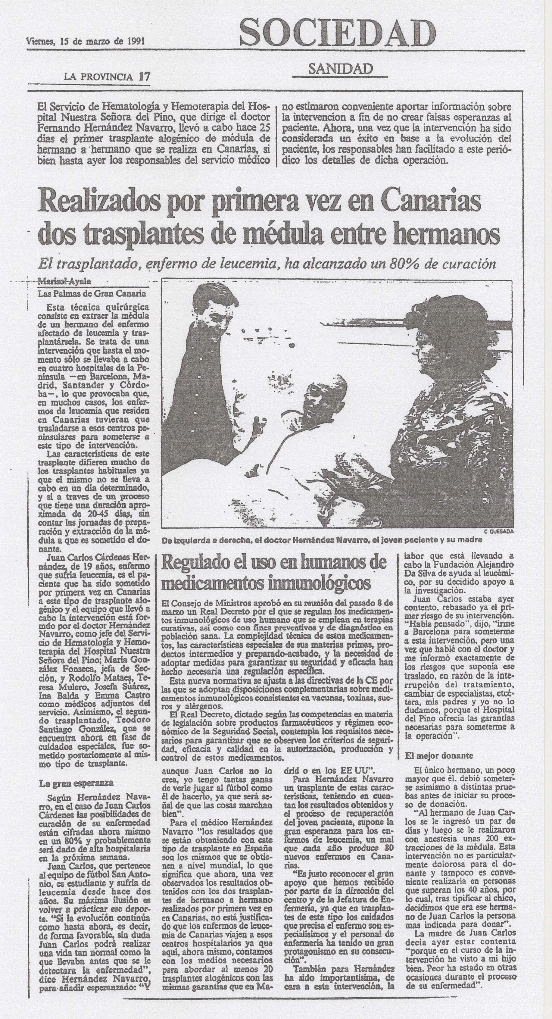 A comienzos de los años 90, la Fundación participó activamente en la puesta en marcha de los primeros trasplantes de médula ósea del archipiélago.